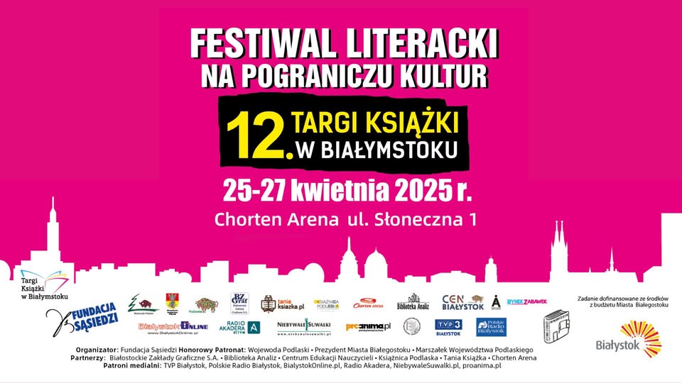 Zapraszamy na kolejną edycję Festiwalu Literackiego „Na pograniczu kultur”, organizowanego w Białymstoku przez Fundację Sąsiedzi. To wyjątkowe święto literatury odbywa się w ramach 12. Targów Książki w Białymstoku i ponownie zgromadzi miłośników czytelnictwa, pisarzy oraz wydawców z całej Polski.