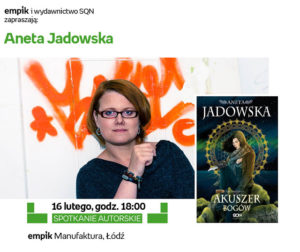Jutro, w czwartek 16 lutego, o godzinie 18.00 w Empiku mieszczącym się w łódzkiej Manufakturze (ul. Drewnowska 58) odbędzie się spotkanie z Anetą Jadowską. Z kolei w piątek (17.02.2017) autorka pojawi się w katowickim Empiku Silesia City Center (ul. Chorzowska 107).