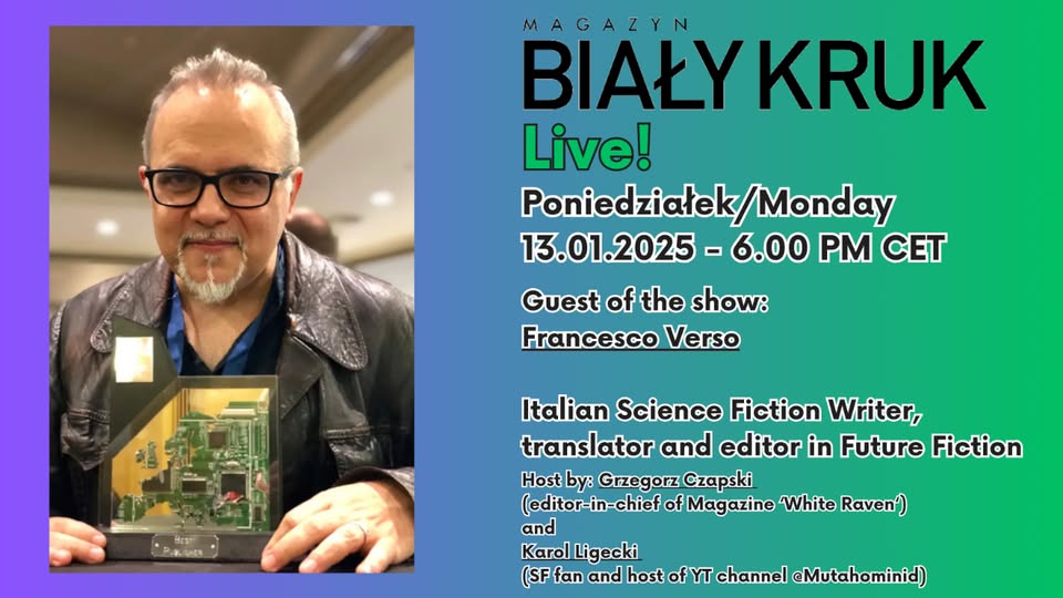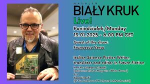 W najbliższy poniedziałek 13 stycznia 2025 roku o godzinie 18:00 rozpocznie się spotkanie z cyklu Biały Kruk Live!, którego gościem będzie Francesco Verso.
