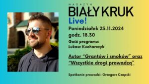 W poniedziałek 25 listopada 2024 roku o godzinie 18:30 rozpocznie się spotkanie z cyklu „Biały Kruk Live!” , którego gościem będzie Łukasz Kucharczyk.