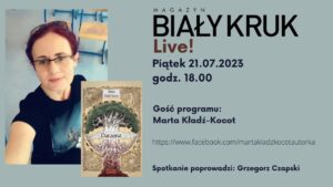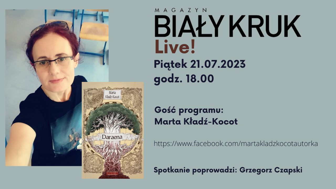 W piątek 21 lipca 2023 roku o godzinie 18:00 rozpocznie się spotkanie z cyklu Biały Kruk Live! z Serii Zajdlowej, którego gościnią będzie Marta Kładź-Kocot.