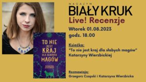 We wtorek pierwszego sierpnia zapraszamy Was na rozmowę o powieści To nie jest kraj dla słabych magów, gdzie Grzegorz Czapski z Magazynu Biały Kruk będzie opowiadał o swoich wrażeniach i opiniach po lekturze. Zaś słuchać tego i odpowiadać na pytania będzie musiała Katarzyna Wierzbicka.