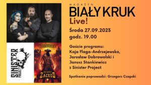 W środę 27 września 2023 roku o godzinie 19:00 rozpocznie się spotkanie z cyklu Biały Kruk Live!, którego gośćmi będą: Kaja Flaga-Andrzejewska, Jarosław Dobrowolski i Janusz Stankiewicz.