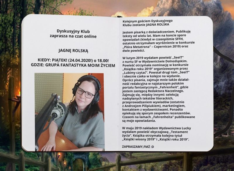 Dziś, o godzinie 18.00 gościem czatu w facebookowej grupie Fantastyka moim życiem – książki, filmy, seriale i nie tylko będzie Jagna Rolska.