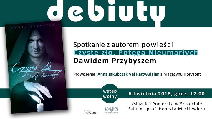 W najbliższy piątek (6.04.2018) w szczecińskiej Książnicy Pomorskiej (ul. Podgórna 15/16) odbędzie się spotkanie z autorem książki Czyste zło. Potęga Nieumarłych Dawidem Przybyszem.