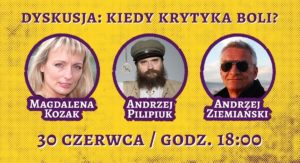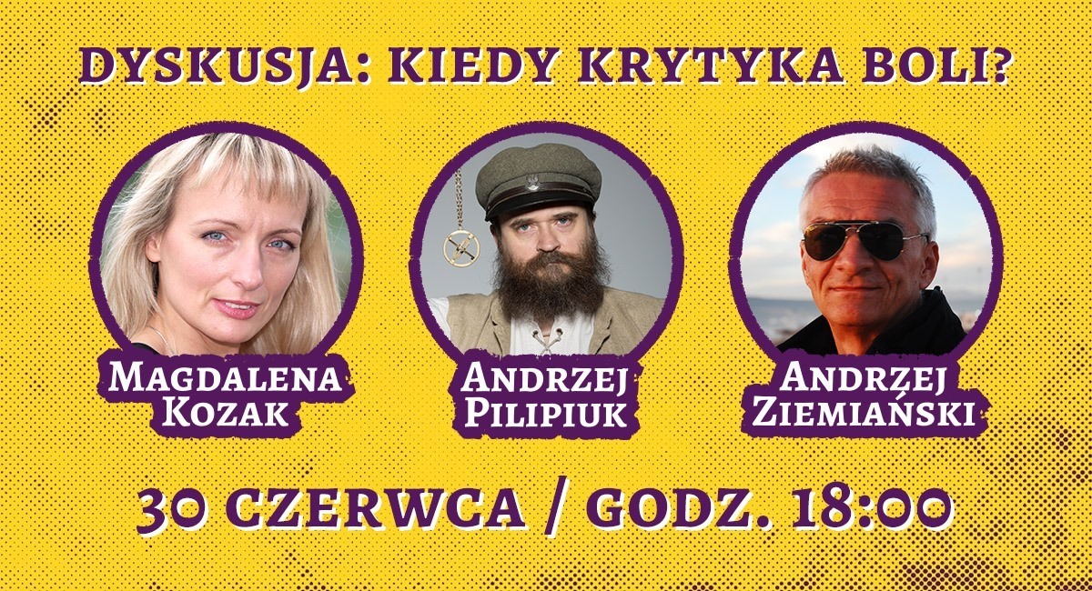 Autor Też Człowiek oraz Fabryka Słów zapraszają we wtorek 30 czerwca o godzinie 18:00 na Dyskusję: Kiedy krytyka boli?, w której udział wezmą Magdalena Kozak, Andrzej Pilipiuk oraz Andrzej Ziemiański.