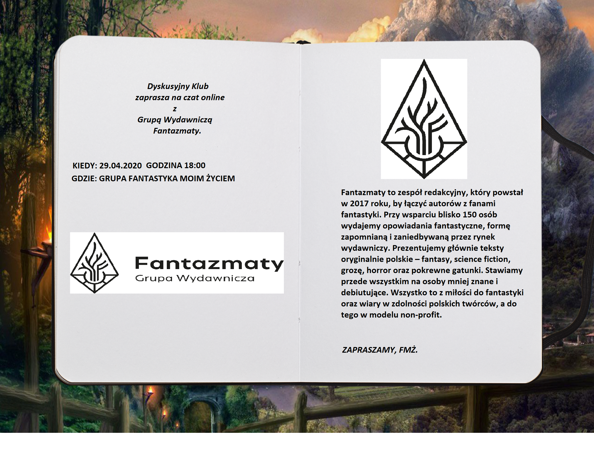 Dziś (29.04.2020 r.), o godzinie 18.00 gościem czatu w facebookowej grupie Fantastyka moim życiem – książki, filmy, seriale i nie tylko będą Fantazmaty Grupa Wydawnicza.