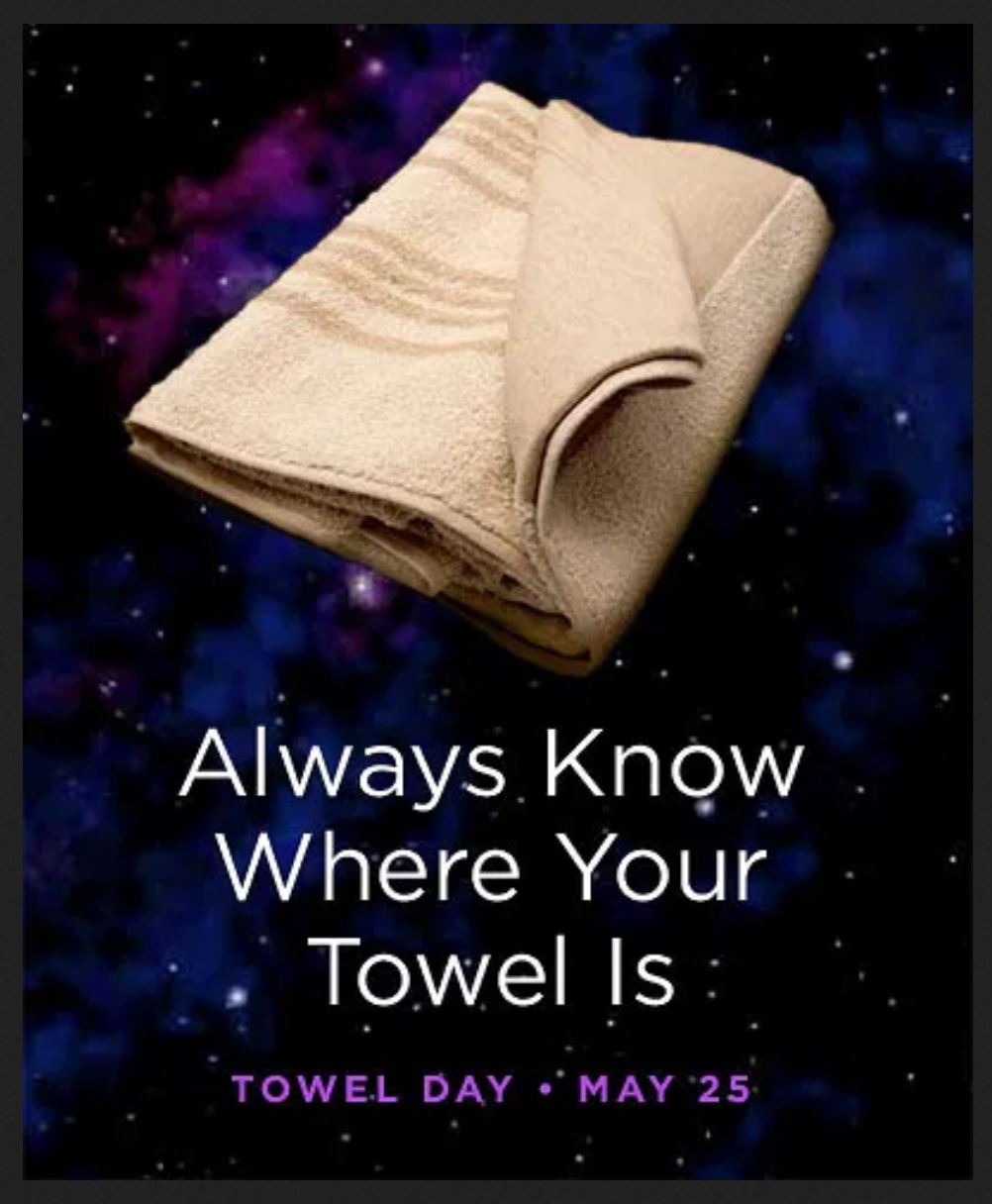 Obchodzony na Ziemi Dzień Ręcznika (Towel Day) stanowi hołd dla Douglasa Adamsa.