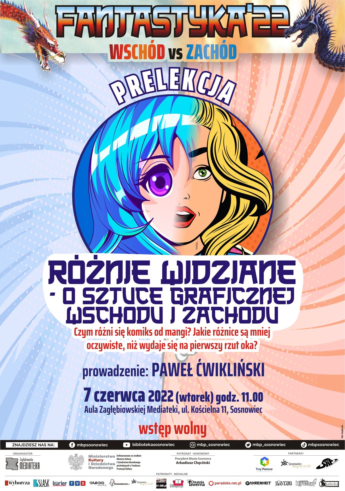 Zagłębiowska Mediateka w Sosnowcu, organizator wydarzenia „Fantastyka 2022: Wschód vs Zachód” zaprasza we wtorek 7 czerwca 2022 r: