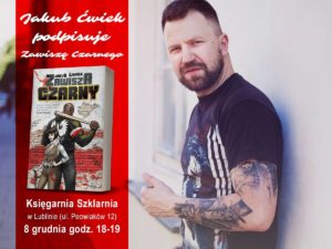 Dzisiaj, w piątek 8 grudnia, w lubelskiej Księgarni Szklarnia (Centrum Kultury w Lublinie, ul. Peowiaków 12) od godziny 18.00 Jakub Ćwiek będzie podpisywał swoje książki, w tym przede wszystkim tę najnowszą pt. Zawisza Czarny.