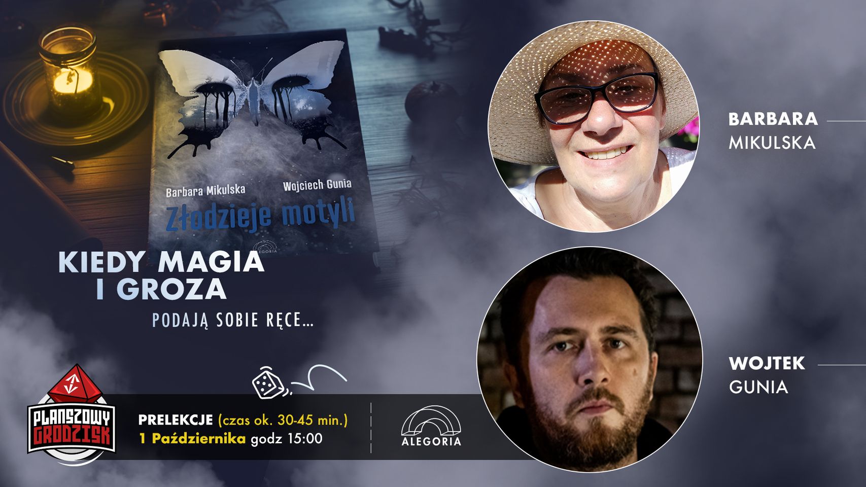 W niedzielę 1 października 2023 roku, podczas II Festiwalu Gier „Planszowy Grodzisk”, Barbara Mikulska oraz Wojciech Gunia spotkają się z czytelnikami w ramach prelekcji Kiedy magia i groza podają sobie ręce… A przyczynkiem do rozmowy jest książka Złodzieje motyli.