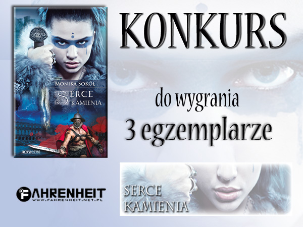 Nagrodami w konkursie są trzy książki Moniki Sokół „Serce kamienia” Laureaci otrzymają nagrodę po przesłaniu danych teleadresowych na adres redakcja@fahrenheit.net.pl