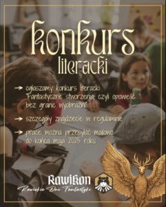 Rawicka Biblioteka Publiczna zaprasza osoby, które ukończyły 16 lat do udziału w Ogólnopolskim Konkursie Literackim „Fantastyczne stworzenia, czyli opowieść bez granic wyobraźni”.