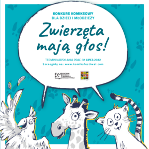 Zapraszamy dzieci i młodzież w wieku 10-18 lat do udziału w kolejnej edycji komiksowego konkursu! W tym roku zadaniem uczestników jest stworzenie komiksu nawiązującego do hasła „ZWIERZĘTA MAJĄ GŁOS!”. Zachęcamy do nadsyłania prac poruszających szeroko rozumianą tematykę ziemskiej fauny, w tym: praw zwierząt, ochrony gatunków, zależności występujących w przyrodzie, życia zwierząt, zwierząt dzikich i domowych oraz ich relacji z człowiekiem.
