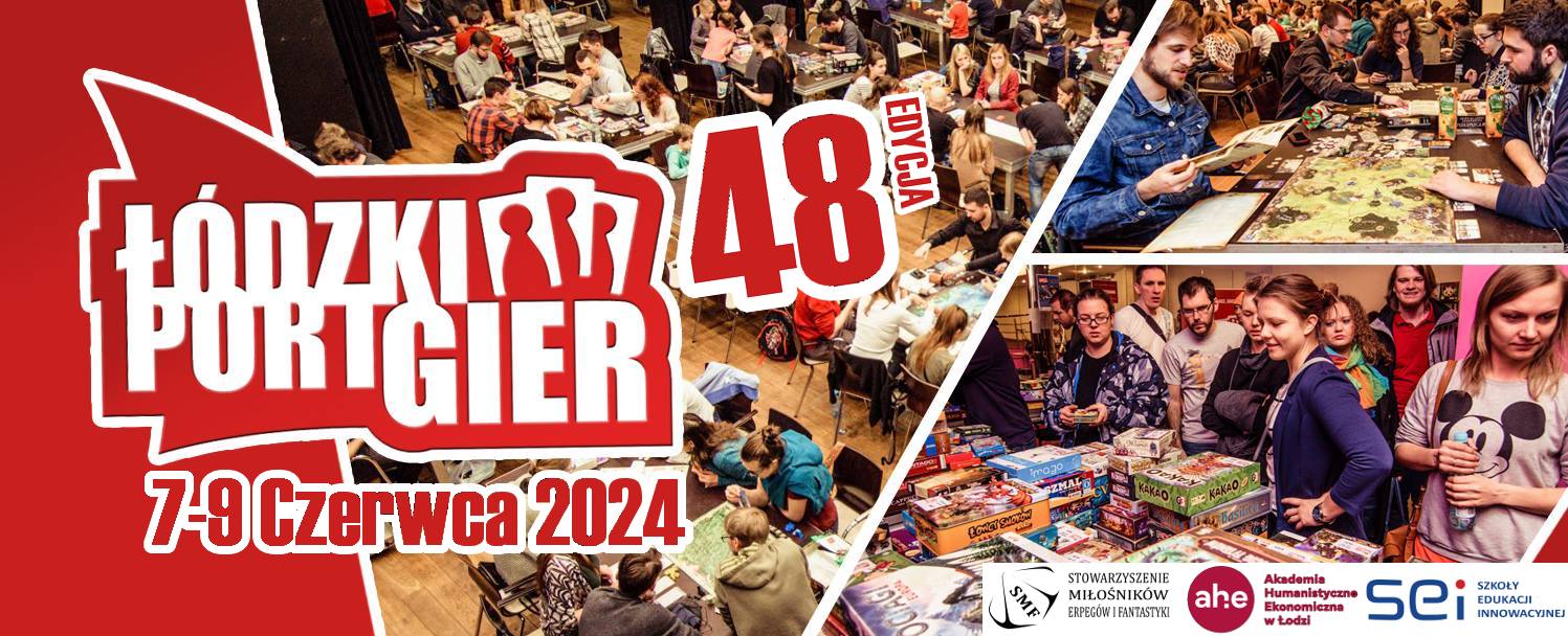Łódzkie Stowarzyszenie Miłośników ERpegów i Fantastyki oraz Akademia Humanistyczno-Ekonomiczna zapraszają w czerwcu (7-9.06.2024 r.) na 48. edycję Łódzkiego Portu Gier