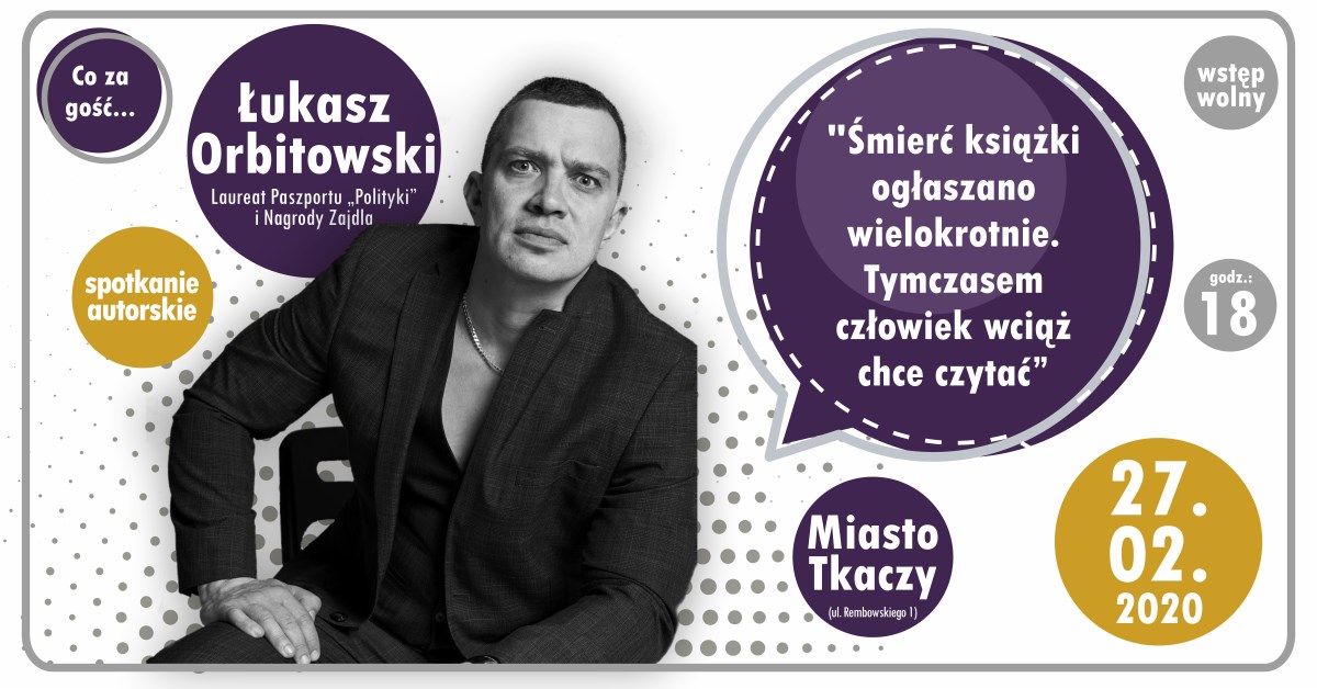 W najbliższy czwartek (27 lutego 2020 r.) o godzinie 18:00 w zgierskim Parku Kulturowym Miasto Tkaczy (ks. Szczepana Rembowskiego 1) rozpocznie się spotkanie z pisarzem Łukaszem Orbitowskim.