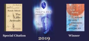 Za najlepszą książkę, wydaną w miękkiej oprawie po raz pierwszy w roku 2019 w Stanach Zjednoczonych (distinguished original science fiction paperback published for the first time during 2019 in the U.S.A.) uznano Sooner or Later Everything Falls into the Sea: Stories Sarah Pinsker.