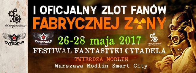 Wydawnictwo Fabryka Słów zaprasza na największą Stalkerską imprezę wszech czasów, tj. I Ogólnopolski Zlot Fanów Fabrycznej Zony, który odbędzie się w dniach 26-28 maja 2017 roku podczas Festiwalu Fantastyki Cytadela w Twierdzy Modlin (Warszawa Modlin Smart City).