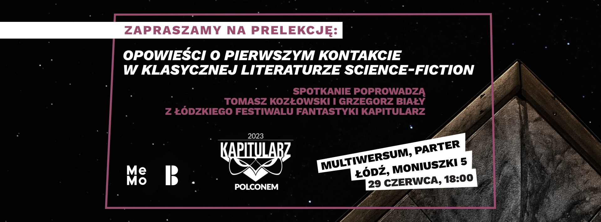 W czwartek 29 czerwca 2023 roku o godzinie 18:00 w łódzkiej Mediatece MeMo rozpocznie się prelekcja pn. Opowieści o pierwszym kontakcie w klasycznej literaturze science-fiction.