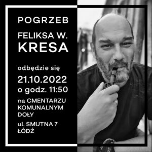 Pogrzeb Feliksa W. Kresa odbędzie się w piątek 21 października 2022 roku o godzinie 11:50 na Cmentarzu Komunalnym Doły (ul. Smutna 7) w Łodzi.