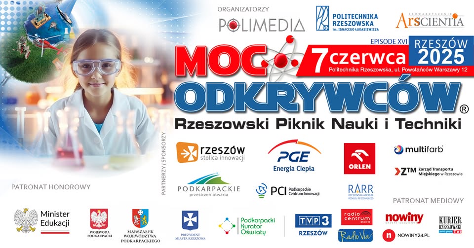 W sobotę 7 czerwca 2025 roku odbędzie się kolejny Rzeszowski Piknik Nauki i Techniki „Moc odkrywców”.