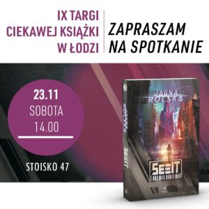- 23 listopada o godzinie 14 na stoisku nr. 47 (Grupa Wydawnicza Publicat) – spotkanie z Jagną Rolską, autorką powieści „SeeIT” wydanej w tym roku nakładem Wydawnictwa Dolnośląskiego.