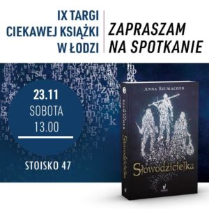 - 23 listopada o godzinie 13 na stoisku nr. 47 (Grupa Wydawnicza Publicat) – spotkanie z Anną Szumacher, autorką powieści „Słowodzicielka”.