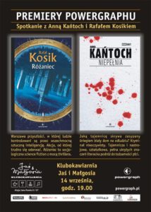 W najbliższy czwartek (14 września) w warszawskiej kawiarni Jaś & Małgosia (ul. Jana Pawła II 57) o godzinie 19.00 rozpocznie się spotkanie z pisarzami: Anną Kańtoch oraz Rafałem Kosikiem.