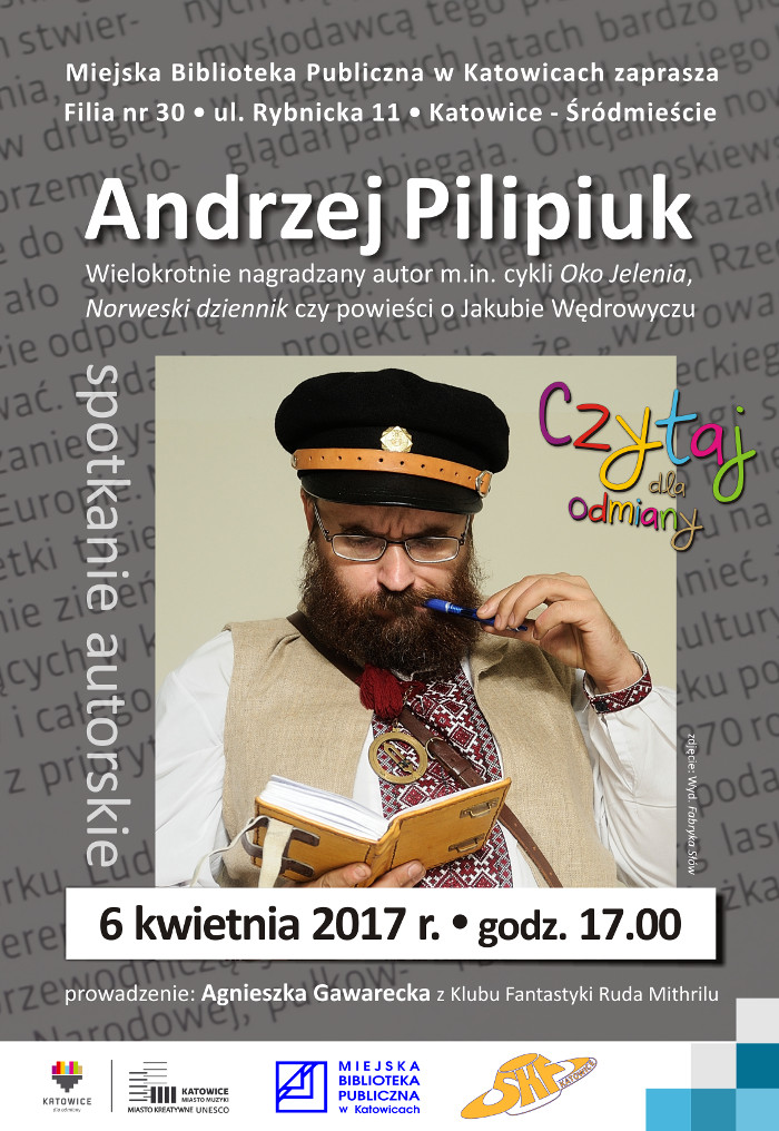 Dzisiaj w Filii nr 30 w Miejskiej Biblioteki Publicznej w Katowicach o godzinie 17.00 rozpocznie się spotkanie z Andrzejem Pilipiukiem.