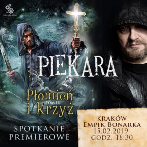 W najbliższy piątek o (15.02.2019 r.) godzinie 18:30 w krakowskim Empiku Bonarka (ul. Kamieńskiego 11) rozpocznie się spotkanie z Jackiem Piekarą. Okazją do rozmowy jest premiera najnowszej książki pisarza Płomień i krzyż tom 3.