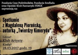 Dzisiaj (28.03.2017) w opolskim Klubie Artysty (Plac Teatralny 12) odbędzie się spotkanie autorskie z Magdaleną Pioruńską.