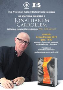 W czwartek 24 października o godzinie 18.00 w sali Parnassos Biblioteki Śląskiej (plac Rady Europy 1) rozpocznie się spotkanie z amerykańskim pisarzem Jonathanem Carrollem.
