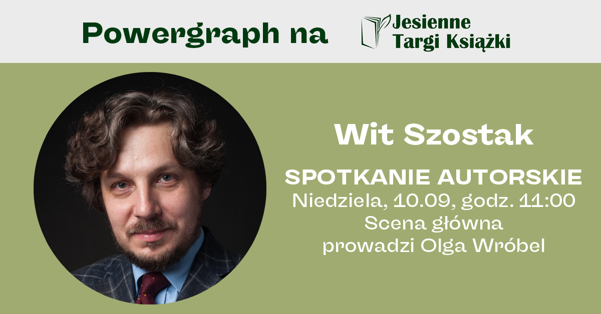 W niedzielę 10 września 2023 roku, podczas Jesiennych Targów Książki w Warszawie, odbędzie się spotkanie z Witem Szostakiem.