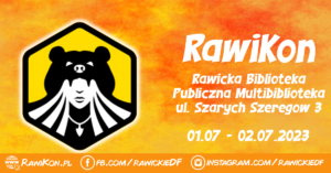 Już teraz zapraszamy na RawiKon – Rawickie Dni Fantastyki, ogólnopolski konwent fantastyki, który odbędzie się w dniach 1 i 2 lipca na terenie nowej Multibiblioteki w Rawiczu (w miejscu starego Gimnazjum) przy ul. Szarych Szeregów 3.