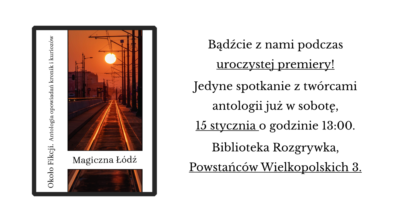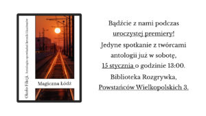 W trzecią sobotę stycznia, to jest 15.01.2022 roku, w Bibliotece Rozgrywka (ul. Powstańców Wielkopolskich 3) odbędzie się uroczysta premiera antologii opowiadań Magiczna Łódź.