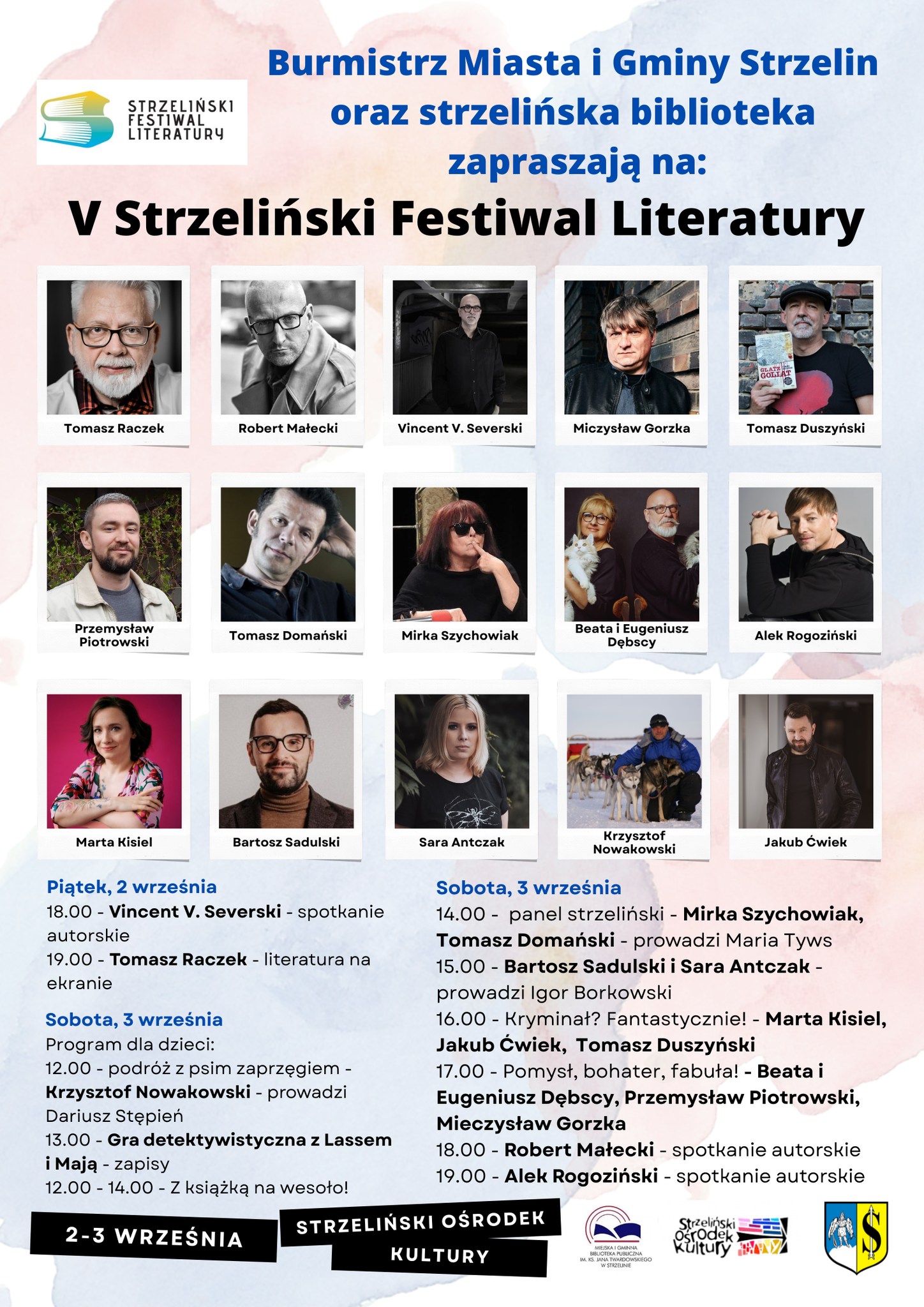 Od piątku 2 września do soboty 3 września 2022 r. potrwa piąta edycja Strzelińskiego Festiwalu Literatury.