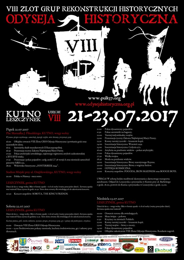 W najbliższy weekend (21-23 lipca 2016 r.) w Kutnie oraz Leszczynku odbędzie się VIII Zlot Grup Rekonstrukcji Historycznych „Odyseja Historyczna” Kutno.