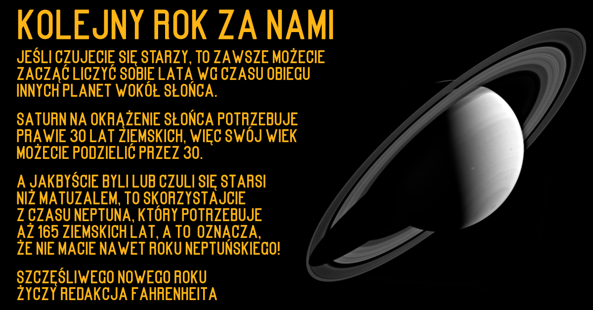 A jakbyście byli lub czuli się starsi niż Matuzalem, to skorzystajcie z czasu Neptuna, który potrzebuje aż 165 ziemskich lat, a to oznacza, że nie macie nawet roku neptuńskiego!