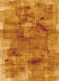 A teraz może nieco o pracach... w końcu jesteśmy w galerii. To brązowe na górze to efekt pokrywania kartki kwadratowymi, nasączonymi herbatą kawałkami papieru. Zajęcie uspokajające, a efekt doskonale nadaje się do kontemplacji, choć może nie w wersji elektronicznej. To niżej zostało wykonane, czy też jest tworzone (gdyż oryginał nie jest jeszcze skończony) na komputerze od początku do końca. Ostateczna wersja w oryginalnym wymiarze (800x600) będzie dostępna niedługo na mojej domowej, aktualnie właśnie przerabianej, stronie. Tam też znajdzie się wykładnia jak należy interpretować ów, wbrew pozorom pełen ważkich treści obraz(ek). Niestety, to będzie dziś jedyny przedstawiciel rysunku w pełni świadomego, a to dlatego, że mój drugi rysunek, wodnik, właśnie osiągną liczbę 40-ej kolejnej kopii i nadal nie uzyskał mojej akceptacji. Mam wrażenie, że będę się z nim jeszcze długo bujał. Jego więc tu na razie nie zobaczycie. Natomiast, dla odmiany może zdjęcie...