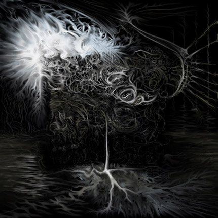 Na koniec znów praca wykonana na komputerze, ale w pełni abstrakcyjna. Jeden z wielu przypadków, który mi uświadomił, że życie pełne jest fascynujących form, a próby malowania przedstawiającego to stanowczy przerost włożonej pracy nad uzyskanym efektem... Rysunek należy oglądać w dość ciemnym pokoju, przy takim ustawieniu monitora by czerń była możliwie mało (choć być może nie całkowicie) "świecąca". W razie oglądania tego rysunku w dzień, lub przy silniejszym świetle, należy rozjaśnić monitor nawet do 100%.