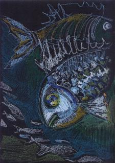 Kiedy obudził się następnego dnia, od razu spostrzegł niewielką rybkę, prawdopodobnie strzeblę, płynącą żwawo w stronę brzegu. Popłynął za nią. Wreszcie, kiedy żwir płycizny był niebezpiecznie blisko, zdecydował się uderzyć. Otworzył szeroko paszczę i zaatakował. Zaatakował. Zaatakował.
