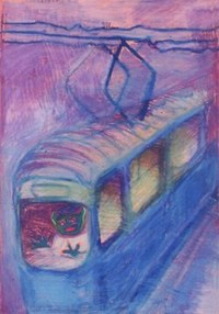 Stałem na pętli tramwajowej, wzniesionej na skalnym półmisku między szczytami. Ciemne tory wyglądały na utkane z kolców, ponure kształty pojazdów wtapiały się w skały. Zamiast budki operatora ruchu wnosiło się coś na podobieństwo zejścia do kopalni, skąd buchał bladoniebieski, zimny ogień. Zacząłem się bać, jak nigdy przedtem. W tym zejściu czaiło się coś upiornego, zło z najgorszych koszmarów sennych, potwór lub diabeł, zjadający ludzi jak krakersy. Schowałem się w kabinie, drżąc, by nie zdradziły mnie białka oczu.