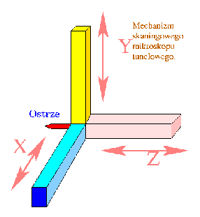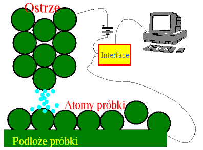 Jak głosi legenda, pierwsze uruchomienie mikroskopu nastąpiło przy współpracy z rejestratorem X-Y. Coś, co jest urządzeniem jeszcze prymitywniejszym od plotera (czy jest jeszcze ktoś, kto pamięta jak wygląda ploter?). Obecnie urządzenia te współpracują tylko i wyłącznie z komputerem. Na ekranie monitora jest wyświetlana mapa rozkładu prądów na badanej powierzchni. Komputer steruje ruchami siłowników piezoelektrycznych oraz pomocniczymi urządzeniami. Ciekawym technicznym szczegółem jest to, w jaki sposób zbliża się próbkę i ostrze na tak niewielką odległość. Ręcznie jesteśmy w stanie podsunąć dwa przedmioty na dystans kilku dziesiątych milimetra. Tymczasem trzeba zejść do ułamka miliardowej części metra. To tak, jakby z Księżyca celować w Ziemię tyczką z dokładnością do dziesiątek centymetrów. Zazwyczaj operacja jest podzielona na dwa etapy. Po ręcznym dosunięciu (czasami za pomocą śruby mikrometrycznej) na ułamki milimetra rusza napęd piezoelektryczny. Pomysłów jest tu wiele, lecz wszystkie opierają się na tym, że siłowniki, zazwyczaj dokładnie te same, które potem służą do skanowania powierzchni, wykonują ruchy o amplitudzie ok. 1/1000 mm. Zazwyczaj przesuwana jest próbka. Stosunkowo najprostszym, bardzo skutecznym rozwiązaniem jest położenie próbki na belce z piezoelektryka. Najpierw wykonuje ona szybki ruch "do tyłu", podczas którego próbka (w odpowiednim uchwycie) ślizga się po belce, potem przesuwa się powoli do przodu bez poślizgu. W ten sposób próbka "jedzie" posłusznie w jednym kierunku skokami po 1/1000 milimetra. Gdy układ pomiarowy wykryje przepływ prądu tunelowego, operacja jest przerywana. Innym rozwiązaniem jest "gąsienica". Belka piezoelektryczna ma doklejone dwie stopki z metalu. Jest ustawiona na alodynowanej płycie aluminiowej. Ta zaś pokryta cieniutką warstwą utlenionego glinu, który jest doskonałym izolatorem. Gdy przyłożymy napięcie do jednej ze stopek i płyty, na skutek sił elektrostatycznych będą się przyciągać. Jeśli teraz wydłużymy belkę, przykładając do jej elektrod napięcie, przesunie się druga stopka. Teraz do niej podłączymy napięcie i skrócimy belkę. Powtarzając cykl, możemy przesuwać całą maszynerię do przodu. W mikroskopie bardzo dobrze znalazły się tak zwane bimorfy, ceramiczne struktury złożone z dwu materiałów, z których jeden pod wpływem przyłożonego pola elektrycznego się kurczy, a drugi – rozciąga. Takie konstrukcje wyginają się w kontrolowany sposób. Sprytnym rozwiązaniem z zastosowaniem bimorfów jest tak zwany "psi ogon", rurka złożona z dwu warstw, najczęściej dwu rurek sklejonych ze sobą. Odpowiedni układ elektrod pozwala wyginać ją we wszystkie strony oraz kurczyć i wydłużać. Mechaniczna konstrukcja mikroskopu z "psim ogonem" jest wyjątkowo prosta: mocuje się na nim uchwyt ostrza i doprowadza przewody z zasilaniem. Oczywiście musimy także dodać mechanizm dosuwający próbkę, ale on nie działa podczas pomiarów, wszelkie niezbędne ruchy wykonuje sam "psi ogon".