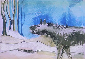 Działo się dawno temu, w czasach, gdy ludzie nie budowali jeszcze sztucznych jaskiń – jak czynią to dzisiaj – lecz zamieszkiwali te, które oferowała im Matka Ziemia. Wtedy to, pewnego zimnego dnia, Wilk, skostniały i głodny, poczuł niezwykły zapach, dochodzący wraz z dymem z niedalekiego wzgórza. Wokół leżał śnieg; biały, połyskujący w słońcu i obcy. Obcy, gdyż przywędrował z północy wraz z lodowcem, wdzierającym się niepostrzeżenie na kontynent, przeobrażającym klimat i zabijającym większość zwierząt. Co prawda, wędrowne ptaki oznajmiały wszem i wobec, iż na południu wciąż jest ciepło, drzewa rodzą soczyste owoce, a wszelka fauna mnoży się wyjątkowo licznie, lecz kto by słuchał wiecznie paplającego drobiazgu? Na pewno nie Człowiek. I nie Wilk. Zapach wychwycony przez nozdrza Wilka był dla niego zupełnie nieznany, ale tak słodki, tak wabiący, że zziębnięty drapieżnik wykrzesał z siebie resztki sił i powlókł się śladem dymu. Nie jadł od wielu dni, więc zataczał się na drżących łapach i ledwie brnął przez śnieżne zaspy. Przed jaskinią zobaczył Kobietę, obracającą nad ogniem ogromny kawał mięsa. Mięso przestało być krwiste i czerwone, przez co niewątpliwie straciło na wyglądzie, lecz w zamian zyskiwało dodatkowy walor: niebiańską wprost woń. – Co robisz, Kobieto? – zapytał. Przestraszona niewiasta przysunęła się bliżej ognia, dobrze wiedząc, że dzikie zwierzęta boją się gorących płomieni. – Przygotowuję mięso na posiłek dla siebie i męża, który wkrótce powróci z polowania – odparła – i który przeszyje cię trzcinową strzałą z łuku lub rozwali łeb kamiennym toporkiem, jeśli w tej chwili sobie stąd nie pójdziesz. Wilk zadrżał. Domyślał się, jak ostre są strzały Mężczyzny i jak twardy jego toporek. Ale był bardzo głodny i bardzo zziębnięty, więc rzekł: – Wybacz, że zakłócam twój spokój, ale jestem bardzo głodny i bardzo zziębnięty, i umrę niechybnie, jeśli nie poczęstujesz mnie potrawą, którą ogrzewasz nad ogniskiem. – Nic mnie to nie obchodzi! – krzyknęła gniewnie Kobieta. – Idź sobie swoją drogą! I Wilk odszedł, zapadając się po szyję w śniegowe zaspy i krztusząc się lodowymi igiełkami, które wdzierały mu się do gardła przy każdym oddechu. Ale nie zabrnął daleko. Padł ze zmęczenia i zasnął. Obudził się następnego dnia, chyba jeszcze mroźniejszego niż poprzedni, i przypomniał sobie Kobietę, która odprawiła go tak bezlitośnie. Ale co tam Kobieta! Zapach! Przecudna woń rumianego od płomieni mięsa! – Nie – powiedział sobie. – Muszę tam wrócić, bo nie ma dla mnie innej nadziei. Im bliżej jaskini podchodził, tym wyżej podnosił pysk i węszył coraz intensywniej. Nie zawiódł się. Oto nowe, wprawdzie zupełnie inne niż wczoraj, lecz równie wspaniałe opary przesycały zmrożone powietrze. – Co robisz? – zapytał Kobietę, mieszającą kijem w kotle, wiszącym nad trzaskającym wesoło ogniskiem. Przestraszona Kobieta przykucnęła i szybkim ruchem porwała z ognia płonącą głownię. Dobrze wiedziała, że najdziksze nawet zwierzę opuszcza odwaga, gdy osmalić mu sierść płomieniem. – Przygotowuję okrasę do kaszy z resztek wczorajszego mięsa na posiłek dla siebie i męża, który wkrótce powróci z polowania, i który przeszyje cię trzcinową strzałą z łuku lub rozwali łeb kamiennym toporkiem, jeśli w tej chwili sobie stąd nie pójdziesz. – Wybacz, że cię niepokoję – rzekł Wilk – ale jestem zziębnięty i głodny, i umrę niechybnie, jeśli nie poczęstujesz mnie swoją potrawą. – Nic mnie to nie obchodzi! – krzyknęła gniewnie Kobieta. – Idź sobie swoją drogą! I Wilk odszedł, nie czując już łap, które zamarzły i stały się twarde, jakby były tylko patykami. Przebijał się przez śnieg, kaszląc i krztusząc się. Kawałki lodu wdzierały mu się do pyska. Ale nie zabrnął daleko, bo padł ze zmęczenia i zasnął. Obudził się następnego dnia, tak samo słonecznego jak poprzedni, lecz z pewnością jeszcze bardziej mroźnego. Nagle przypomniał sobie zapach kaszy i spieczonej mięsnej okrasy. – Nie – powiedział. – Muszę tam wrócić, bo nie ma dla mnie innej nadziei. I ponownie bajeczny zapach sprawił, że krew zaczęła żwawiej krążyć w żyłach, i wykrzesał z wychudzonego zwierzęcia resztkę energii. Im bliżej podchodził, tym czuł się silniejszy, taka była moc niezwykłej woni, dobiegającej wraz z dymem od ludzkiej sadyby. – Co robisz, Kobieto? – zapytał, gdy dotarł przed jaskinię. Kobieta szybko przysunęła się do ognia, chroniącego niezawodnie przed najdzikszą nawet bestią. – Przygotowuję zupę z kości, jakie pozostały po ostatnich posiłkach – odpowiedziała. – Abyśmy nie byli głodni, ja i mój mąż, który powinien już wrócić z polowania, i który przeszyje cię trzcinową strzałą z łuku lub rozwali łeb kamiennym toporkiem, jeśli w tej chwili stąd nie odejdziesz. – Wybacz, że cię niepokoję – rzekł Wilk – ale umieram z głodu, a ty możesz mnie uratować. Wystarczy tylko, że użyczysz tej marnej kości, która wystaje z garnka. – Nic mnie to nie obchodzi! – krzyknęła gniewnie Kobieta. – Idź sobie swoją drogą! I wtedy Wilkowi odebrało rozum z głodu i rozpaczy. Zapomniał, jak gorący jest ogień, jak dotkliwie bolą przypiekane boki. Zapomniał o Mężczyźnie, który wróciwszy z polowania, niewątpliwie użyje swego kamiennego toporka, powodowany chęcią zemsty. Zapomniał o tym wszystkim i rzucił się na Kobietę, sięgając ostrymi zębiskami do jej gardła. I, szalony, byłby zagryzł ją tego zimnego dnia, przy trzaskającym wesoło ognisku, przy garnku pełnym parującej zupy, gdyby nie donośny krzyk, który echem odbił się od kamiennych ścian jaskini, od zaśnieżonych leśnych ostępów, od lodowej pokrywy zalegającej zb