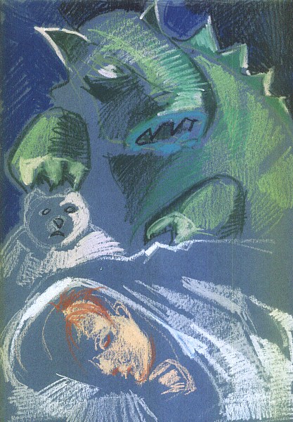 1. Adaś usiadł na łóżku i szeroko otworzył oczy. Przez dłuższą chwilę nie był pewien, czy przypadkiem wciąż nie słyszy tych okropnych kroków. TUP-TUP-TUP! Zielony Smok nadchodzi, aby połknąć Adasia i oblizać się ze smakiem. ZE SMAKIEM! Adaś znów zadrżał. Mógłby krzyczeć, ale wiedział, że dziś na nic się to nie przyda. Rodzice poszli przecież do Cioci Eli na imieniny i w domu jest tylko opiekunka. Tym bardziej należy siedzieć cicho. Opiekunka zna tysiące sposobów, aby uśpić Adasia, ale nie potrafi uchronić go przed Zielonym Smokiem. TUP-TUP! Adaś zacisnął usta w niemym przerażeniu. To nie był sen. Smok istnieje naprawdę i właśnie się zbliża. TUP-TUP! Bestia nie będzie się zastanawiać ani chwili. Nie wolno się odezwać, bo cię usłyszy. Nie wolno się poruszyć, bo cię zobaczy. Zielony Smok nie lubi dzieci, które nie śpią. Zamknij oczy, albo spojrzy na ciebie Zielony Smok i zamienisz się w kamień! Adaś ostrożnie położył się i wsunął cały pod kołdrę. TUP! Smok stanął. Na pewno zobaczył, jak się kładę i teraz namierza mnie. Nie mogę nawet oddychać. Chłopiec leżał zupełnie nieruchomo. Starał się wykonywać wdechy tak płytkie, jak się tylko da, by kołdra nie unosiła się zbyt wysoko. Wreszcie zaczął się dusić. Powietrze pod kołdrą zrobiło się śmierdzące i gęste. Dawało coraz mniej tlenu, nie przynosiło ulgi wyczerpanym płucom. Jeszcze moment, tylko kilka chwil i Smok pójdzie sobie. Przerażenie walczyło w nim z chęcią odkrycia się i nabrania pełnego haustu powietrza. Czuł się jak tamta ryba Wojtka, kiedy wyjęli ją z wody. Nikt ich nie widział. Weszli do łazienki, gdzie w wannie pływał karp. Wojtek włożył ręce do wody i wyjął go. Ryba zaczęła się rzucać i spadła na podłogę. Wojtek i Adaś wystraszyli się. Stali i patrzyli, jak karp próbuje oddychać powietrzem. Skrzela otwierały się i zamykały, ale ryba wyraźnie się dusiła. Adaś też się dusił. Nie był pewien, ale czuł, że jego twarz robi się fioletowa. Tymczasem Smok czekał na ruch człowieka. Gotowy rzucić się w odpowiednim kierunku i w mgnieniu oka "pożreć niegrzecznego chłopca". Ryba bezradnie ruszała skrzelami. Adaś ledwo mógł już wytrzymać bez świeżego powietrza. Wdech, wydech. Sina twarz Adasia w rękach zapłakanej mamy. Wdech, wydech. Sine, bezwładne palce. Zielony Smok tylko czeka na niego. Czeka na słabeusza. No nie płacz! Taki duży chłopiec i się mazgai. A co będzie, jak przyjdzie Zielony Smok? On tylko czeka na takich słabeuszy. Złapie cię i będzie połykał kawałek po kawałku! Adaś dusił się. W każdej części ciała brakowało tlenu. Pocił się mocno i ten zapach dodatkowo psuł powietrze. A może było to coś innego? Może nie tylko się poci, ale jeszcze... popuszcza. Strach nie dawał za wygraną. Chłopiec leżał sparaliżowany. TUP-TUP-TUP! Smok wyraźnie się przybliżył! Jeden zbyt mocny wdech i rzuci się na Adasia. Za chwilę otworzy paszczę pełną zielonych, zgniłych zębów i zacznie go pożerać. Ale jeszcze go nie widzi, jeszcze moment! Drrrrrrrrrryyyń! Telefon przerwał ciszę i rozdarł pajęczynę strachu. Smok poderwał się i odleciał do swojego wymiaru. Jeszcze kilka chwil Adaś leżał bez ruchu, a potem powoli odsunął kołdrę. Twarz owiało mu świeże, chłodne powietrze. Nabrał go w płuca i natychmiast zasnął.