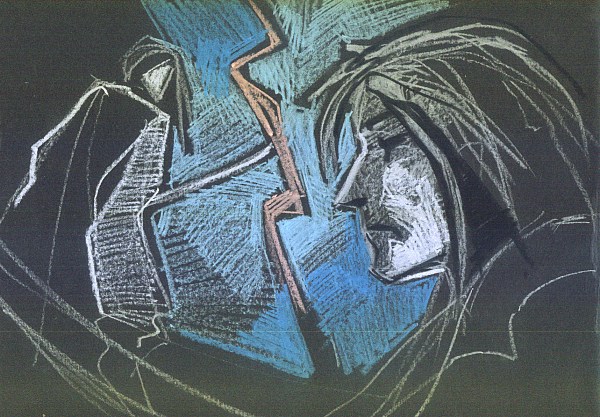 Cień odskakuje, w oczach Lloyda widać spokojną, chłodną determinację. Krople deszczu otaczają go niczym drugi płaszcz. Uniesiony miecz błyszczy w słabym dziennym świetle.