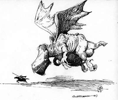 Księżniczka siedziała na parapecie wąskiego okna wieży. Znudzonym wzrokiem wodziła po doskonale znanym krajobrazie. Wciąż te same pola, lasy i smętne bajora topniejącego śniegu. Dzisiaj słoneczko przygrzewało już nieco mocniej, jakby właśnie się dowiedziało, że najwyższy czas na przedwiośnie, i postanowiło nadrobić wszystkie poprzednie zaniedbania. Księżniczka ziewnęła. Poprawiła tradycyjny hennin w kształcie wysokiego stożka, z ciągnącym się niemiłosiernie, muślinowym welonem, który zawsze o wszystko zawadzał i darł się przy byle okazji. – Pomocy, pomocy – obwieściła beznamiętnym tonem, bardziej z poczucia obowiązku niż rzeczywistej nadziei na wsparcie. – Ratunku. – Cicho tam – powiedział strażnik, również trzymając się obowiązującej konwencji. Siedział po turecku na wyleniałej trawie pod wieżą, wystawiając twarz na ożywcze promienie słońca. Położył włócznię na skrzyżowanych kolanach, oparł się rękami o rozmiękłą ziemię. W zębach zgryzał jakieś źdźbło niewiadomego pochodzenia. Księżniczka wychyliła się z okna i z bezbłędnym wyczuciem napluła mu na sam środek hełmu. – A masz – stwierdziła. – Kacie, oprawco. Strażnik się nie przejął. – Eee tam. Wielkie mi co. Jak mi hełm zardzewieje, książę pan kupi mi nowy. Nie masz co się wysilać. ![]() Westchnęli oboje. Rzeczywiście, w ogóle nie było się po co wysilać. Powiało tradycyjnym wczesnowiosennym chłodem. Strażnik wstał, przeciągnął się. Podszedł do wieży, otworzył małe, kamienne drzwiczki i zniknął we wnętrzu ciemnej izdebki. Księżniczka westchnęła raz jeszcze, zrezygnowana. Rozejrzała się po ospałej, zastygłej w bezruchu okolicy. Nic się nie działo, absolutnie nic. Po chwili strażnik wyszedł, opatulony grubym kocem. Popatrzyła na niego z zazdrością. Takiemu to dobrze, koc fajna rzecz... Też by się tak zawinęła, ale jej nie wypadało. Wiało w tej wieży jak cholera, a ona nic, tylko te muśliny i batysty, musi być przecież zwiewna i powiewna. Pociągnęła nosem. No tak, kolejny katar. Strażnik zapatrzył się gdzieś w pole. – Oo... – powiedział sennie. – Znowu jedzie. Jakieś coś. Księżniczka wbiła wzrok w dal. Dostrzegła mikroskopijną kropkę na horyzoncie. – Aha – potwierdziła. – Ale może to nie do mnie... – pocieszyła się złudnie. – Daj spokój – zrugał ją strażnik. – Ile chcesz tu siedzieć, co? Lata lecą, a ty ciągle w tej wieży. Inne w twoim wieku to już mają mężów i dzieci, i w ogóle... Stroją się, na bale chodzą... – podpuszczał ją sprytnie. Ziewnęła. – I dzień w dzień muszą uśmiechać się do jakiegoś palanta, kłaniać mu się w pas i mówić: o tak, panie mężu – rzuciła z pogardą. – Brrrr... Nie dla mnie. – Jasne – powiedział zgryźliwie strażnik. – Siedź tu sobie, siedź. Pewnie ci się wydaje, że ta placówka jest szczytem również moich marzeń. – Obchodzą mnie twoje marzenia... – zadrwiła ostentacyjnie. Nie odpowiedział. Kropka rosła, zbliżając się, ujawniała szczegóły swojej tożsamości. Bez wątpienia, rycerz na koniu. Księżniczka popatrzyła z dezaprobatą. Przeszła na drugą stronę wieży, tę od jeziora. – Te, Paskuda – zawołała głośno, wychyliwszy się przez okno. – Rycerz jedzie. Nic się nie stało. – Paskuda! – powtórzyła księżniczka. – Wstawaj! Micha! Podano do stołu! Woda zabulgotała. Z gwałtownym plaśnięciem z głębiny wynurzyło się olbrzymie, zaspane oko, na wpół przykryte zieloną, chropowatą powieką. Załypało niepewnie, po czym jakby oprzytomniało nieco. Podążyło w górę, wyłaniając się z wody razem z drugim okiem i resztą potwornego pyska. – Mniam? – zapytała Paskuda nieufnie. – Tak, mniam – westchnęła księżniczka. – Znowu przywlokło jakiegoś łowcę przygód... – Mniam! – zgodziła się z nagłym entuzjazmem Paskuda. Wstała powoli, przeciągając się wśród ogłuszającego szumu przelewającej się wody. Ogromne, zielone, kostropate cielsko zachrzęściło, zazgrzytało. Paskuda z wyraźną przyjemnością rozłożyła błoniaste, podobne do nietoperzych skrzydła i spojrzała prosto w przedwiosenne słońce. – Schowaj się, głupia! – ofuknęła ją księżniczka. – Jak cię teraz zobaczy, spierniczy, zanim zdąży zrozumieć, co widział. I na tym będzie koniec, po obiedzie, keine mniam, kapujesz? Paskuda obrzuciła ją złym spojrzeniem, zanurzyła się jednak posłusznie. – Ależ to głupie bydlę – skonstatował strażnik, stając na brzegu. Oszkalowana nikczemnie bestia wynurzyła się na mgnienie oka i strzeliła w niego precyzyjnym strumieniem lodowatej wody. Strażnik zaklął pod nosem, przemoczony od stóp do głów. – No, tak – powiedział wściekły. – Wygrała pani dzisiejszy konkurs w pluciu, gratulujemy. To bawcie się tu dobrze, miłe panie. Ja się idę przebrać. No i ogrzać, oczywiście. – Idź, idź – rzuciła pogardliwie księżniczka z wysokości swojego okna. – I tak nigdy nie jesteś potrzebny. Paskuda wszystko załatwia sama, nie wiem, po co cię tu trzymają... ![]() Zignorował przytyk. Zdecydowanym krokiem dotarł do swojej izdebki i zamknął się w niej. Księżniczka postanowiła przystąpić do wypełniania obowiązków. Usiadła znów na parapecie. – Po-mo-cy – wydeklamowała. – Ra-tun-ku. Rycerz cwałował ku niej z zapałem. Najwyraźniej narzucił ostre tempo, był już bowiem całkiem nieźle widoczny. Księżniczka przyjrzała mu się wnikliwie. Sylwetka owszem, niczego sobie. W siodle się trzyma prosto i pewnie. Wysportowany, znaczy się. Co do urody, trudno powiedzieć. Ten cholerny hełm prawie wszystko zasłania, niewiele widać, niestety. Chyba blondyn, bo to raczej nie słoma mu tam z tyłu wystaje... No i co poza tym: oczy ma, nos też, ręce ma, nogi ma... Do czasu, oczywiście. Jak to z rycerzami bywa. – Po-m