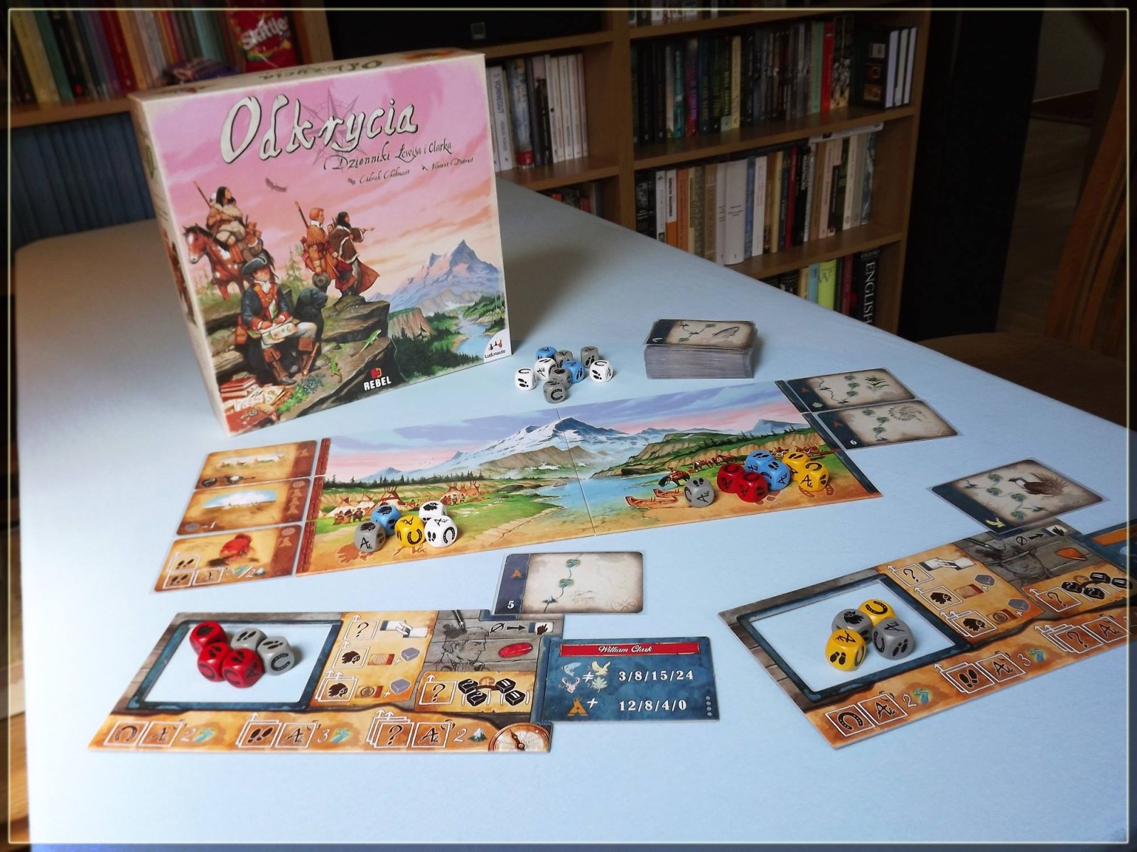 Jak z regrywalnością? Zapowiada się nieźle. Ponieważ zaczynamy z losowym zestawem Indian i odkryć, za każdym razem musimy dostosowywać się do sytuacji i szukać najlepszych rozwiązań. Pod tym względem Odkrycia – zupełnie jak Lewis i Clark – to gra optymalizacji. Wygra ten, kto najszybciej rozpędzi swój silniczek. Wiąże się z tym zresztą kolejne podobieństwo. Mimo że mechanika jest całkiem inna, klimat pozostał ten sam – wciąż żmudnie przygotowujemy się do wyprawy, żeby potem sadzić susy po planszy (bądź, w tym przypadku, po kartach). Klimat wyścigu przetrwał, choć tym razem wyścig to nieco mniej oczywisty – karty punktów po zdobyciu są niejawne, dzięki czemu na pierwszy rzut oka nie widać, kto prowadzi. Co wydaje się kwestią dość istotną, szczególnie w kontekście krytyki, jaka spadła na Lewisa i Clarka, gdzie niektórzy gracze od połowy rozgrywki marzą już tylko o tym, by ta jak najprędzej się zakończyła.