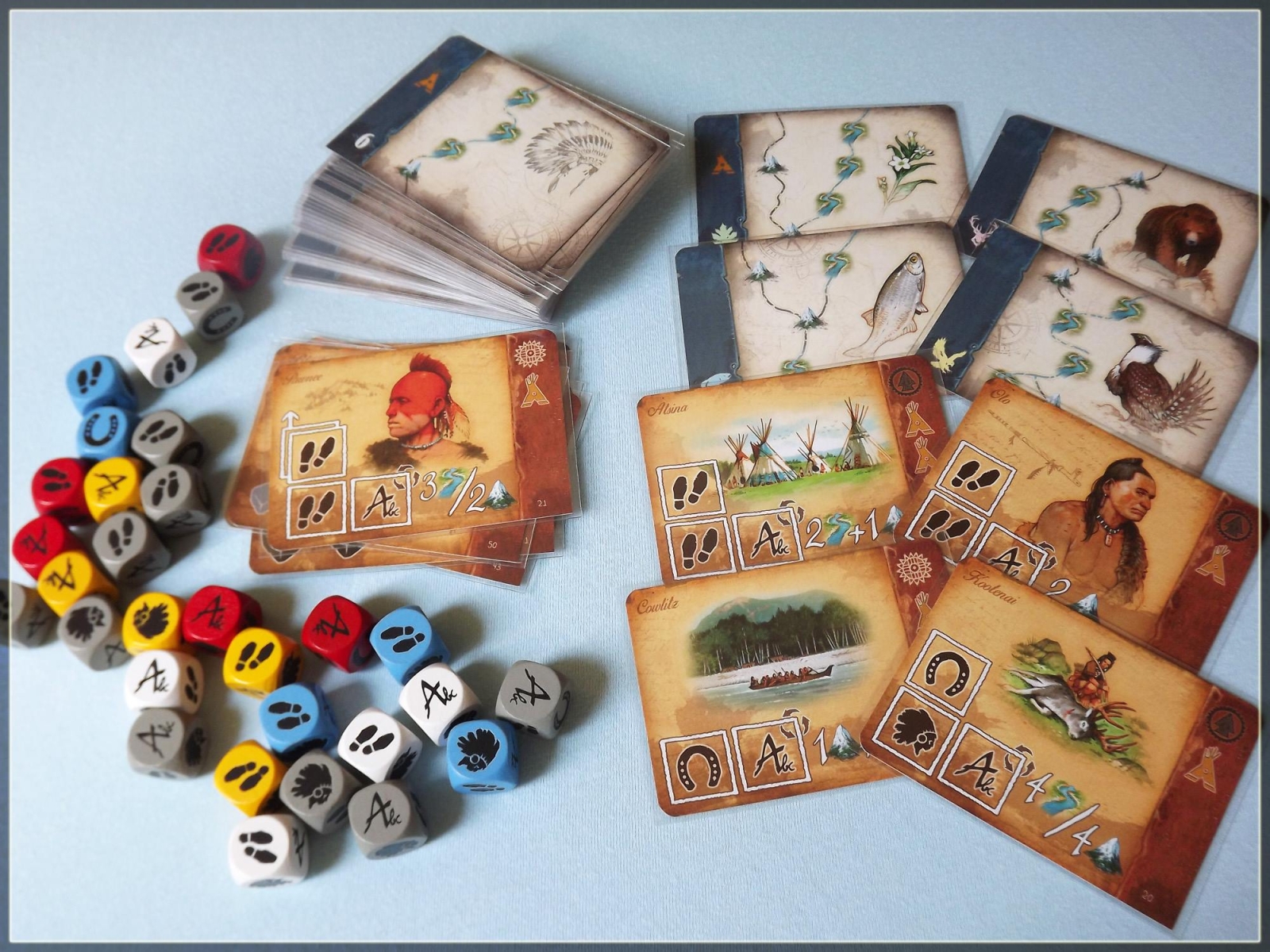 Otóż podczas gry możemy zdobywać karty Indian, które powiększają naszą ekspedycję i zapewniają nowe akcje lub bonusy pasywne, możemy też – i to jest gwóźdź programu – dokonywać odkryć, pokonując niedostępne góry i rwące rzeki. Karty odkryć są istotne, gdyż to one zapewniają na końcu gry punkty, a zdobywamy je, poruszając ekspedycję po wytyczonym szlaku. Początkowo każdy gracz dysponuje zestawem akcji podstawowych – nie są one szczególnie opłacalne, jednakże każda zdobyta karta Indian zwiększa nasze pole manewru, bo dzięki nim możemy pokonywać teren coraz szybciej i coraz taniej.