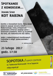 Spotkanie, które poprowadzi Przemysław Zawrotny, będzie poświęcone komiksowi Kot rabina Joanny Sfar. Wspomniane będą również: Klezmerzy, Wampir czy Profesor Bell.